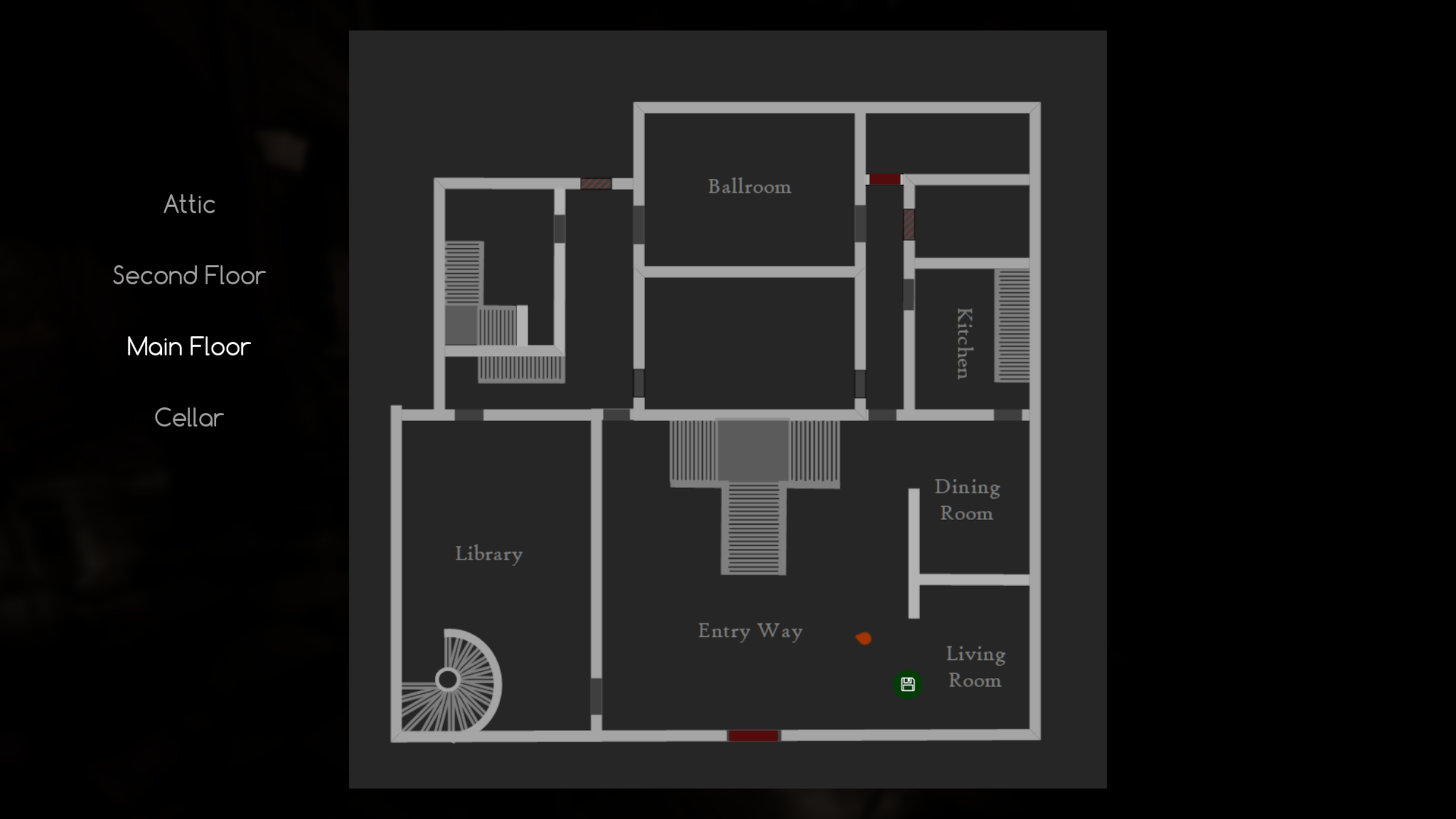 Features 9 puzzles of varying complexity, a progression-updated multi-floor map system, inventory management systems, and simple but classic combat with various zombies (four distinct models, with details such as hair, clothing, and skin appearance randomly determined on spawn).